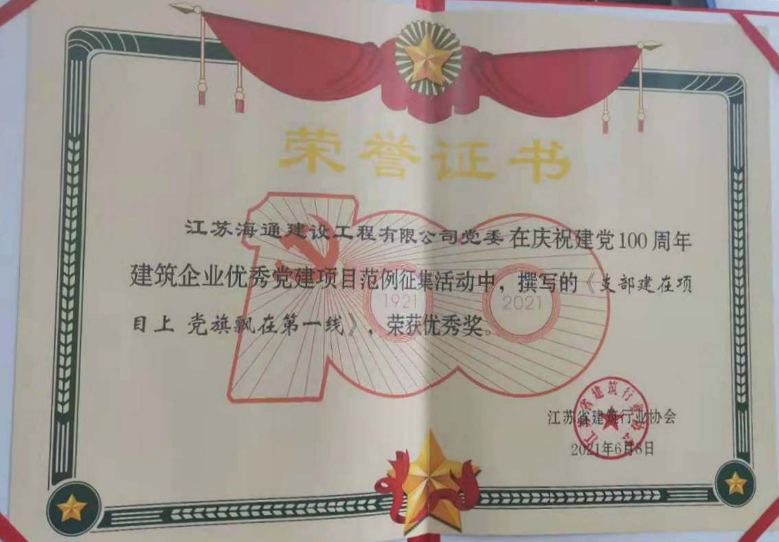 近日,由江苏省建筑行业协会组织开展的江苏省建筑企业党建工作经验交流会在苏州市顺利举办。会议现场发布了省建筑企业优秀党建项目获评名单,共106家企业入选,连云港交控半岛app最新版下载,半岛(中国)权属江苏海通建设工程公司党委报送的党建项目范例《支部建在项目部 党旗飘在第一线》,荣获优秀奖。