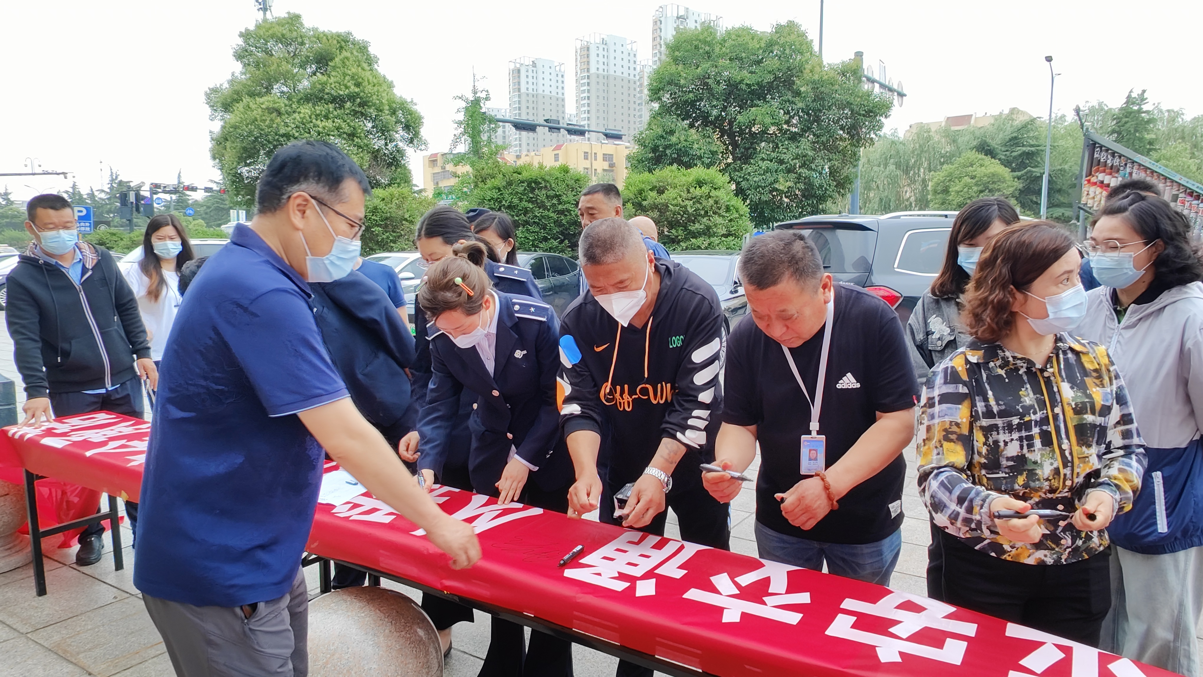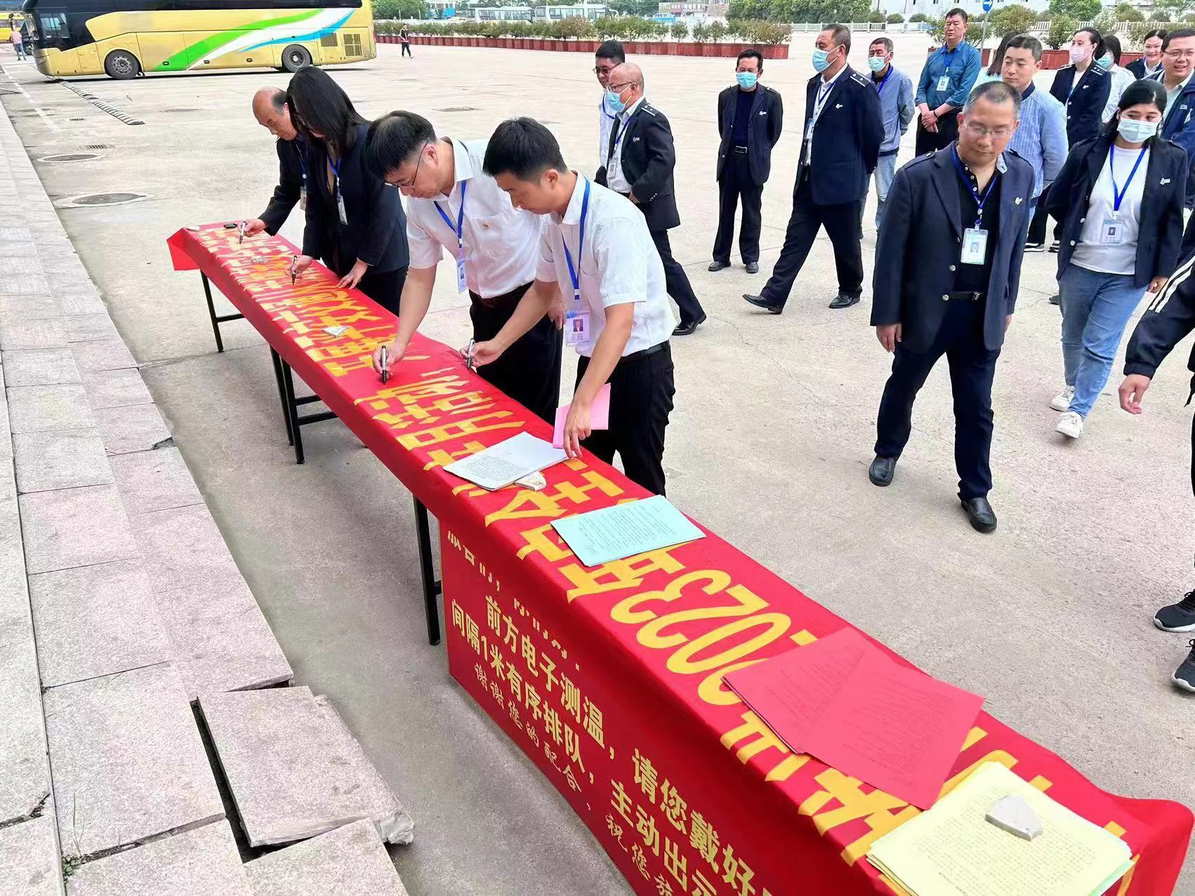 仪式最后,员工在“平安交通,从我做起”横幅上签名,以实际行动表明遵章守纪,平安交通,从我做起的决心。