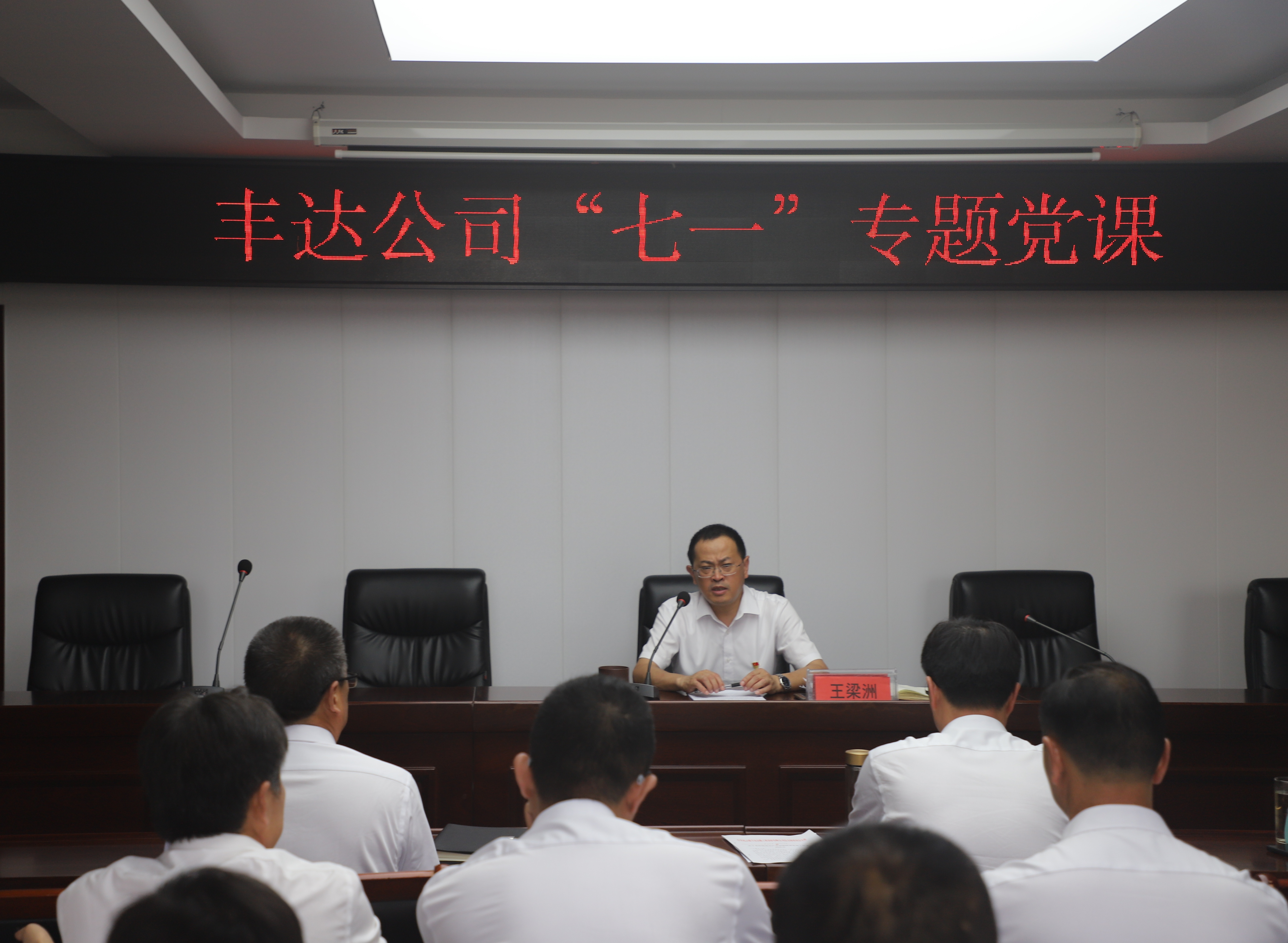 为深入学习贯彻党的二十大精神,热烈庆祝中国共产党成立102周年,6月30日下午,丰达公司举行“七一”表彰大会。公司党总支书记、董事长王梁洲出席并上党课,会议由公司总支委员、总经理唐龙主持。公司管理层及相关部门负责人、各单位党政负责人、党员代表参加会议。