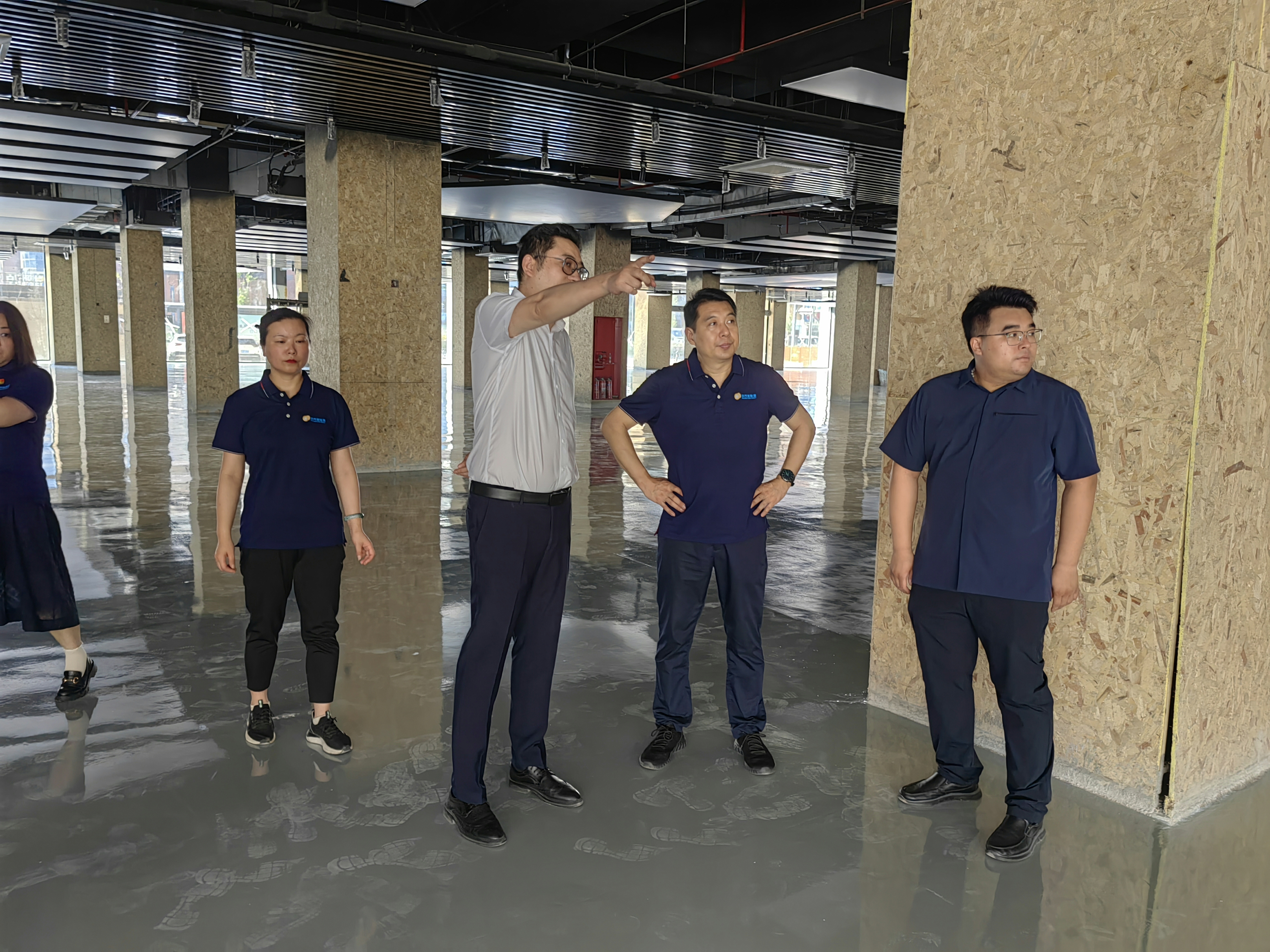 8月8日上午,明茂公司党总支书记、总经理袁军带领班子成员到汽车销售公司新能源综合展厅项目建设现场进行检查指导工作,汽车销售公司相关负责人陪同检查。