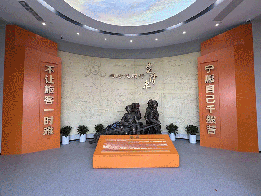 “雷锋车”事迹陈列馆位于江苏省连云港市新浦汽车总站客运站二层,面积由原来的300平方米增至614平方米,展览线路长度约230米。整个展馆分为在学雷锋大潮中诞生、在改革开放中发展、在新时代中奋进、在传承弘扬中光大四个部分。根据时代变迁中“雷锋车”组的成长脉络和感人故事,通过标志性图片、数据图标、音像视频、实物文物和场景造型附以说明文字等多种方式,全方位立体展示“雷锋车”组60年全心全意为人民服务的先进事迹,让参观者拥有更加直观的观展体验。