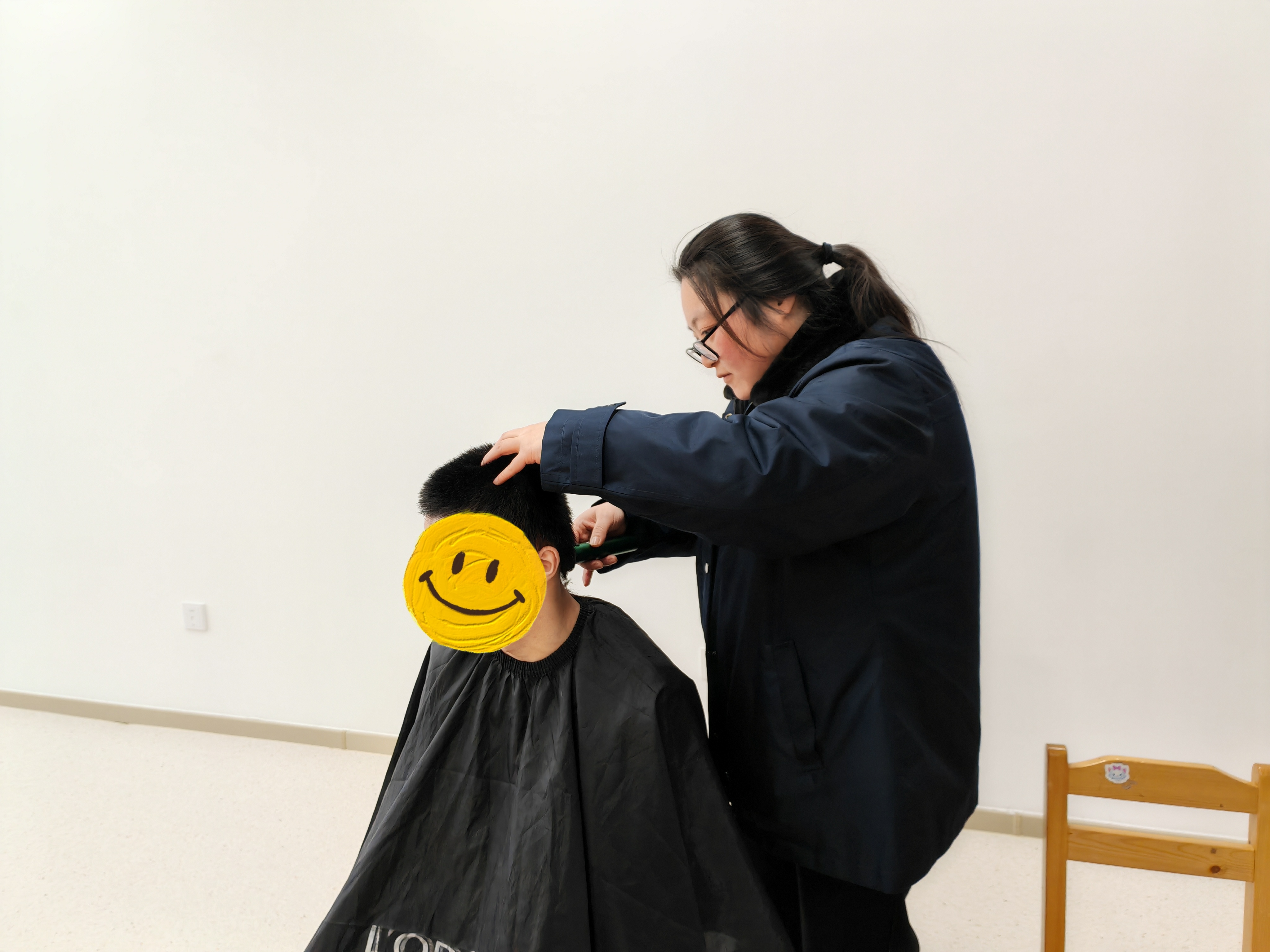 活动现场,志愿者们陪着孩子们画画、聊天,让他们感受到社会的关爱,同行的志愿者还专门带了理发工具,为孩子们设计修剪各种各样的发型。