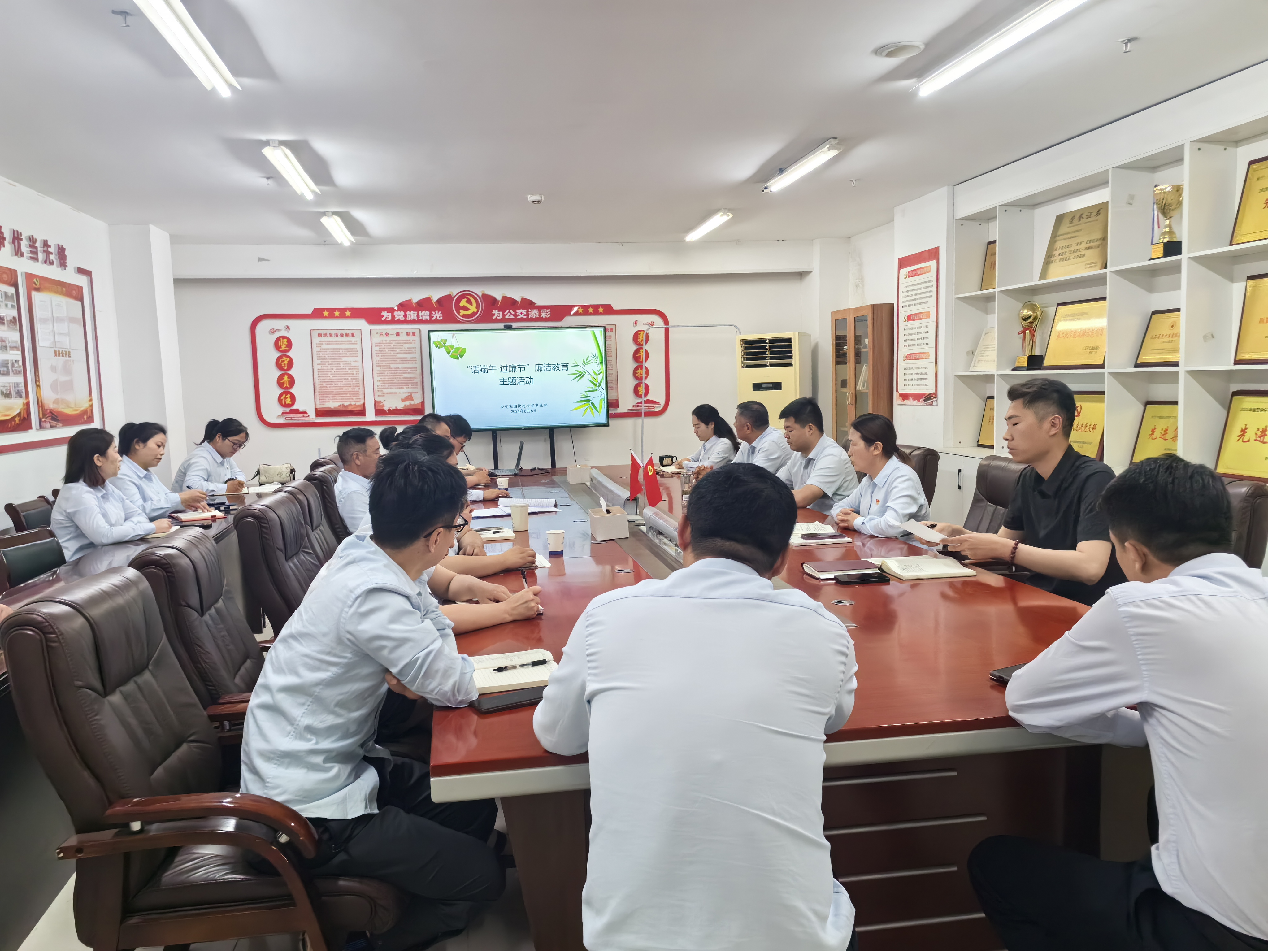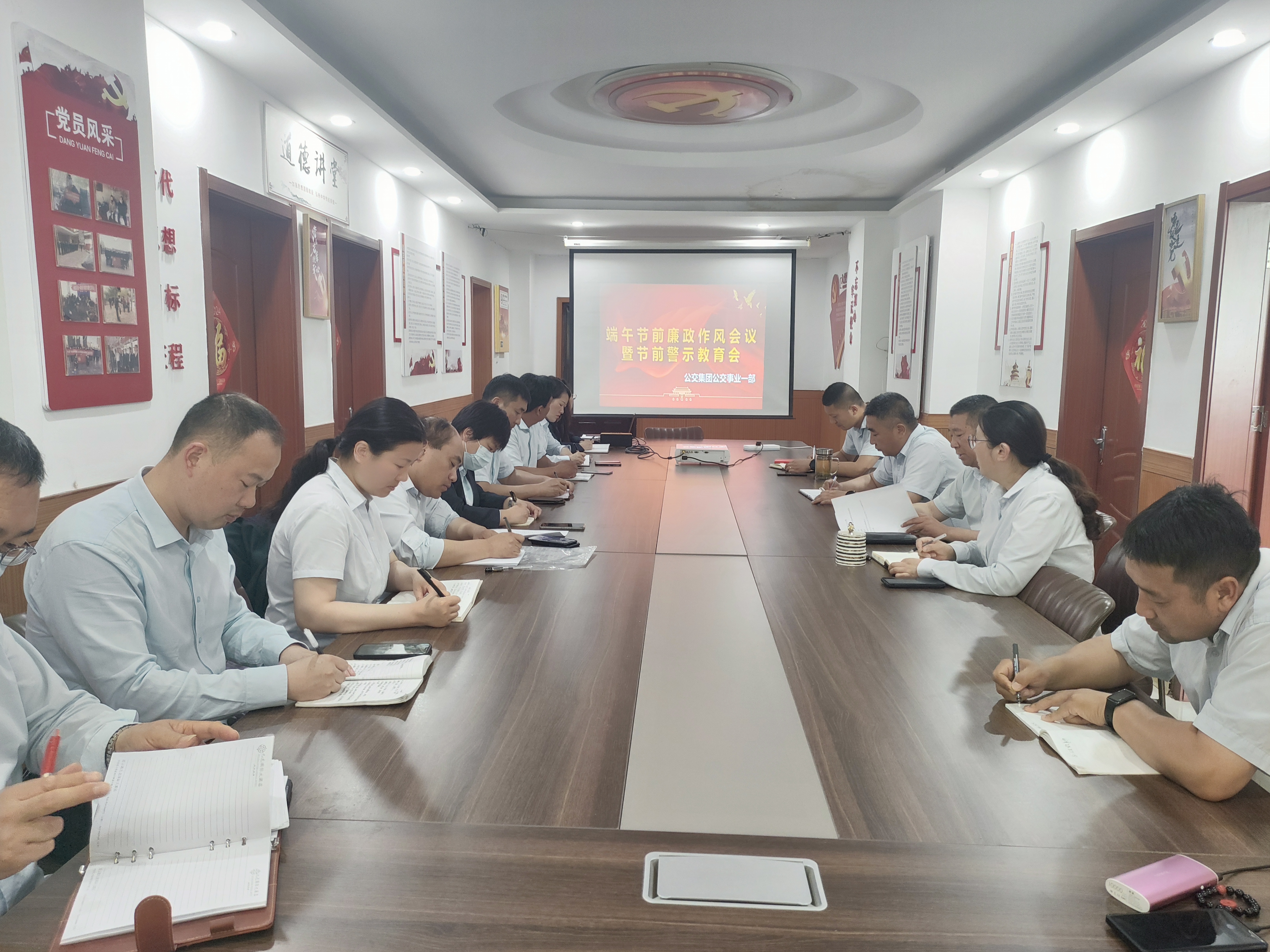 6月7日下午,公交事业一部召开“端午节”前廉政警示教育会,支部书记、经理王浩主持会议,三级及以上党员干部参加。