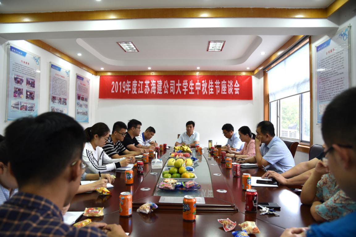 910日上午,江苏海建公司举办了2019年中秋节大学生座谈会,公司各级领导与近三年入职的十几名大学生欢坐一堂,畅谈心声。