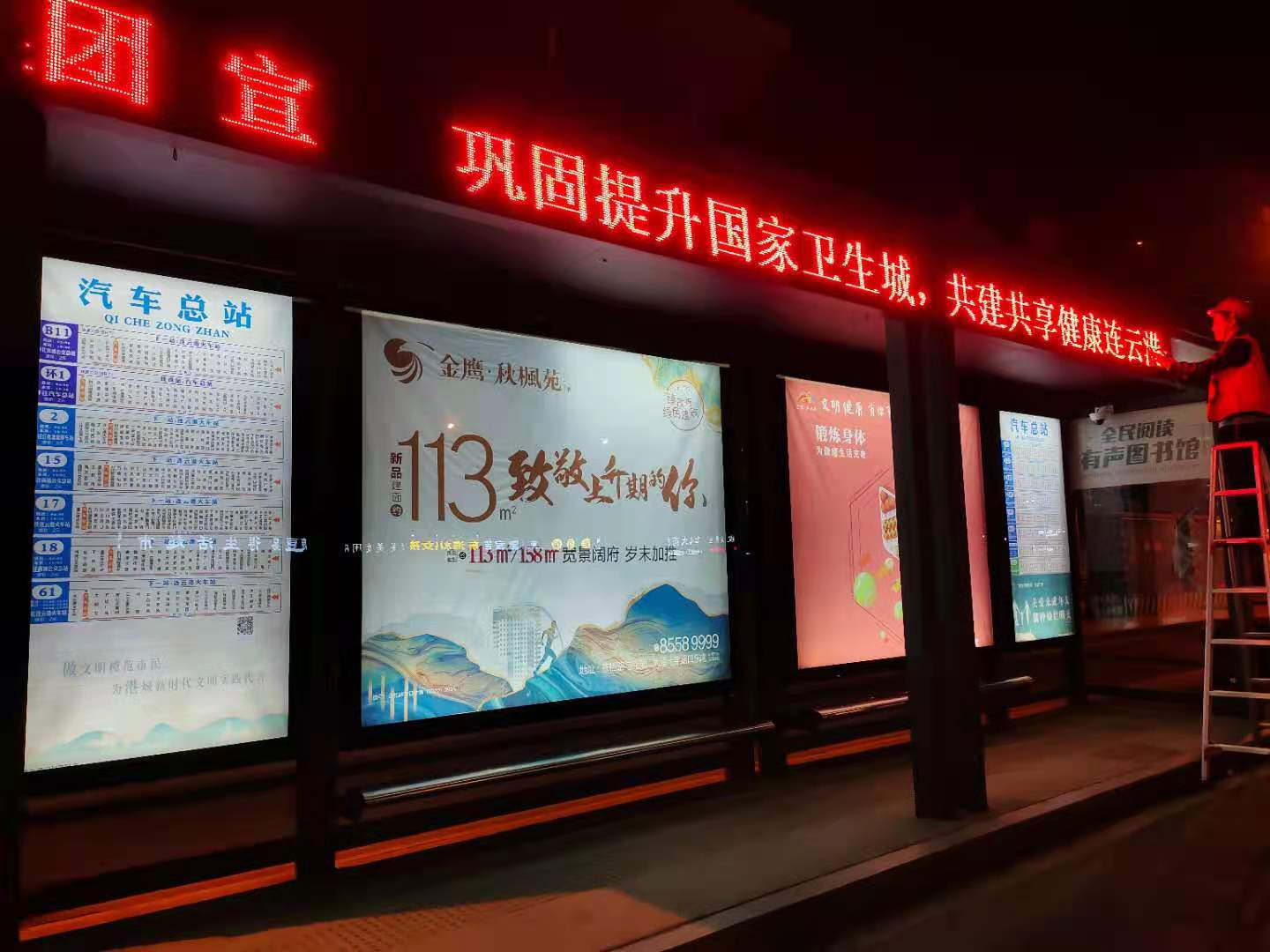近日,交通半岛app最新版下载,半岛(中国)充分利用自身媒体资源,在市区主要路段的400余个公交站亭的LED条屏投放宣传标语,基本覆盖了市区及连云区主要道路。宣传条屏每晚循环播放上万余次,有效强化了对我市卫生城市常态化建设工作的宣传力度。