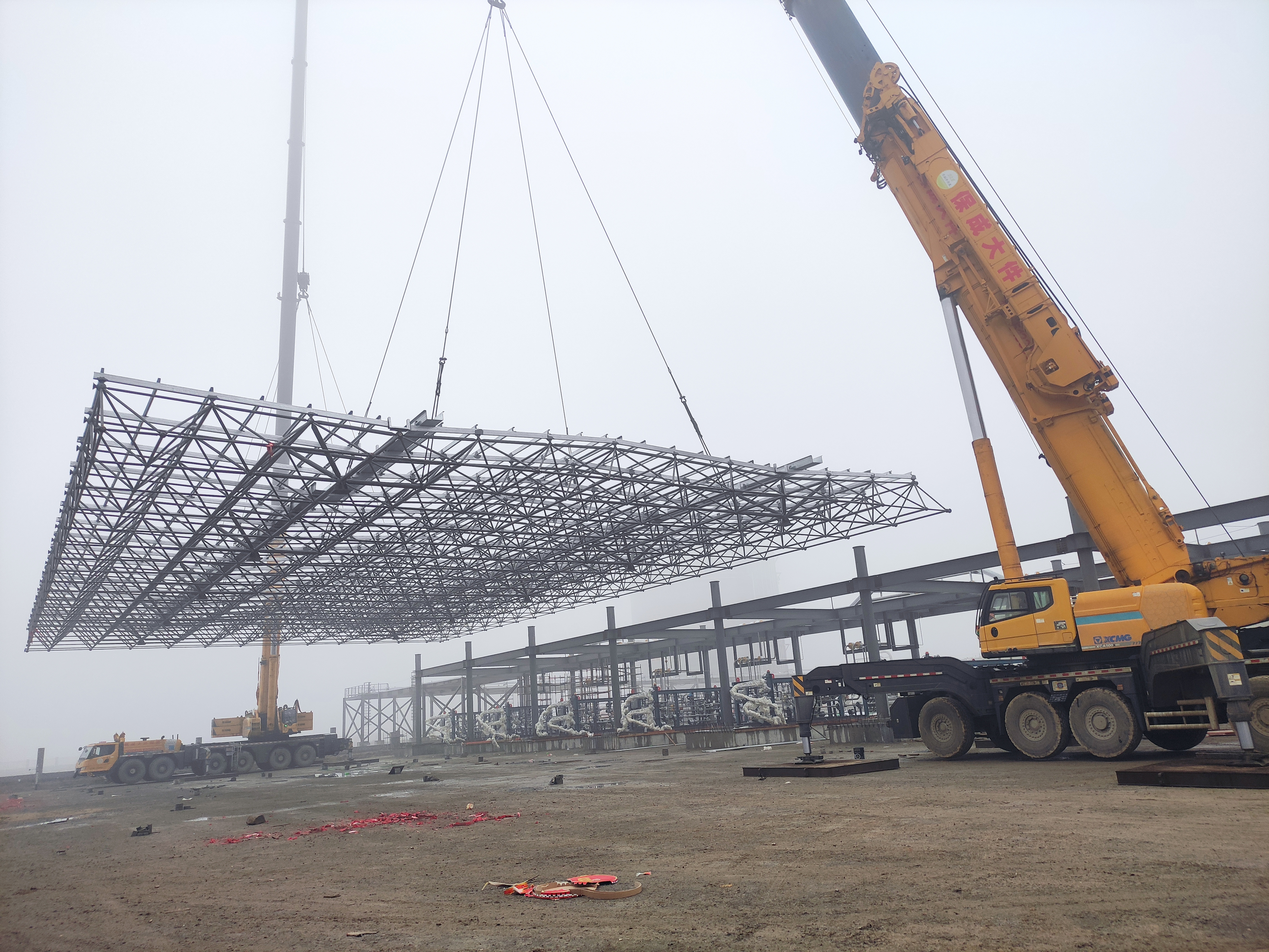 本次钢结构网架拼接吊装的顺利完成,为后续的设备工艺安装奠定了坚实的基础,同时也为LNG储配站顺利完成建设迈出了坚实的一步。