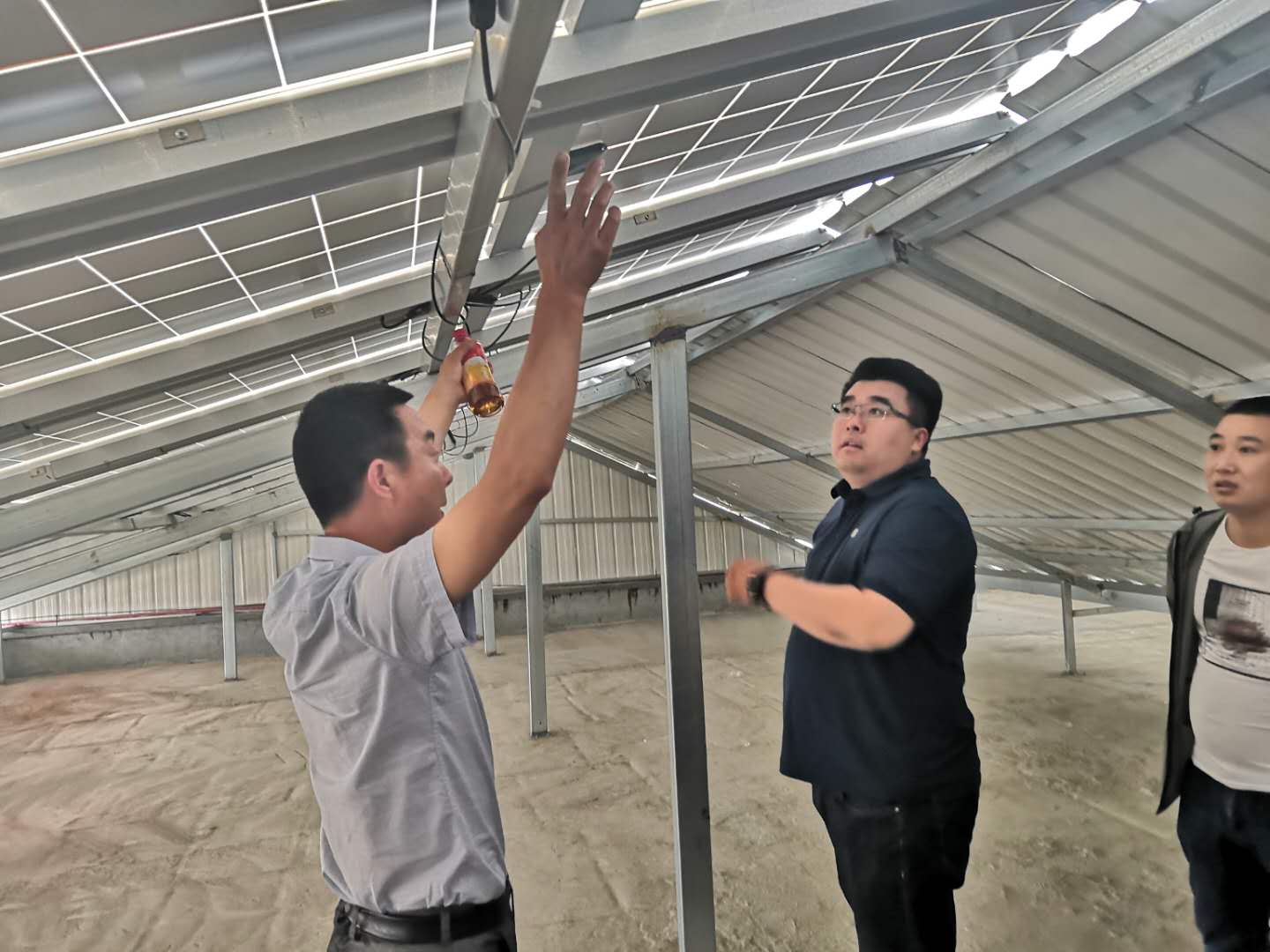 调研组人员现场查看了该项目的分布式光伏组件、逆变器、并网系统、排水系统等建设情况,并与该项目投资方负责人对光伏行业的施工技术、发电情况、投资回收期、行业政策等方面进行了深入交流。双方一致认同光伏发电项目是绿色能源建设的新型项目,是绿色生态发展、节能减排的新领域,具有明显的社会效益、经济效益。通过此次调研,一行人学习了同行业先进技术,为下一步的分布式光伏项目建设积累更多经验。