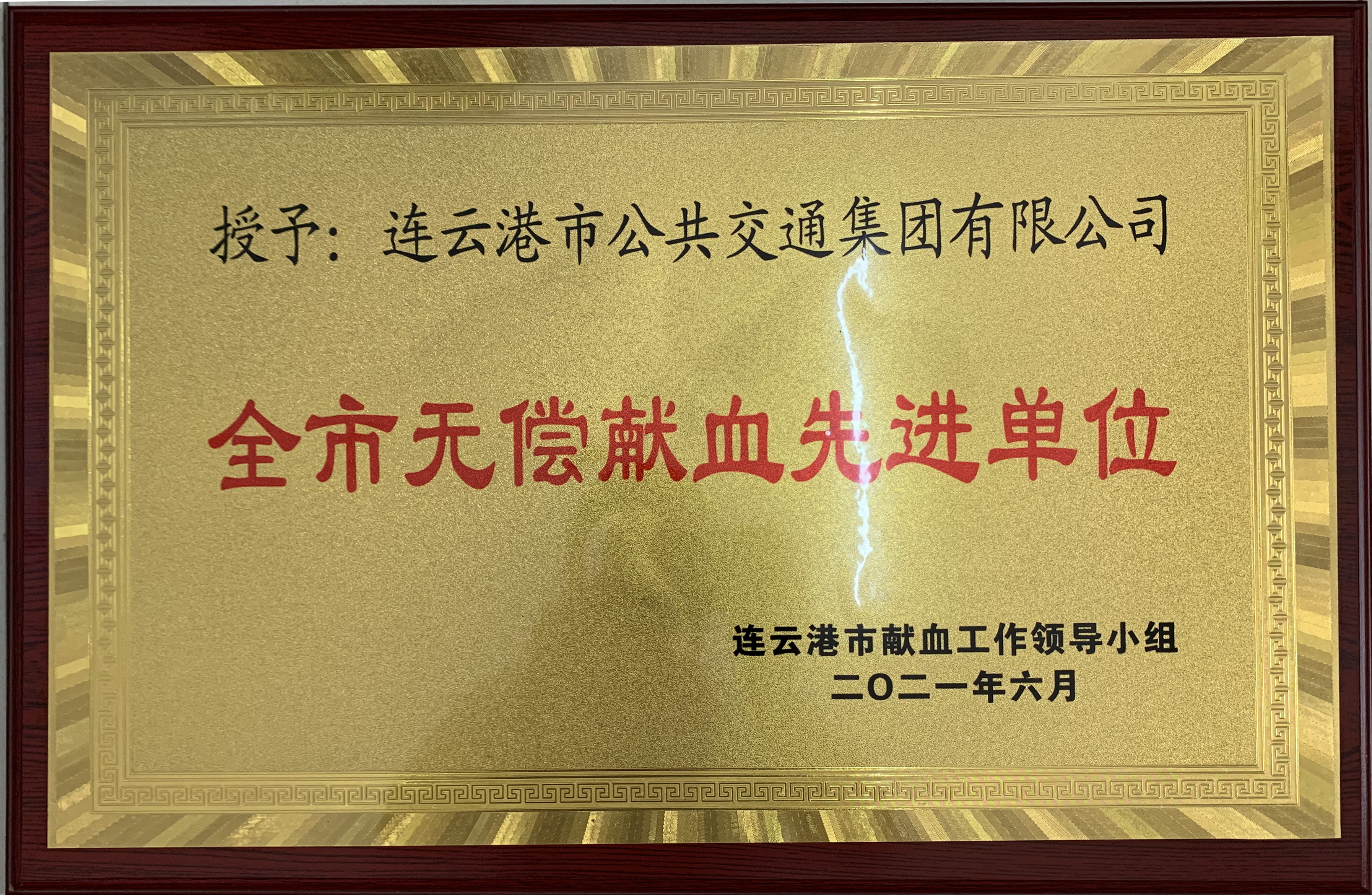 日前,连云港市献血领导小组授予连云港市公交半岛app最新版下载,半岛(中国)“全市无偿献血先进单位”荣誉称号。